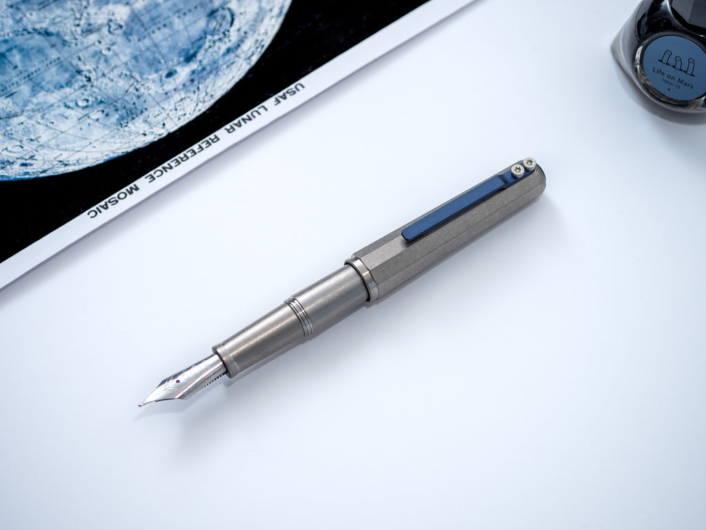 The Ixion Pocket is paired with a large, smooth, #6 nib (Bock 250 model) that is made in Germany. It is one of the only pocket pens to feature such a large nib, thereby ensuring that there is no compromise between the pen's small size and its writing quality.