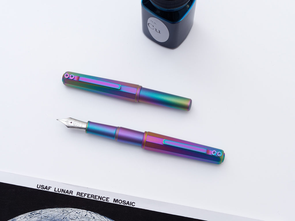The Ixion Pocket is our newest compact writing instrument. It combines a distinctive 10-sided faceted design and a large #6 nib together in one highly portable pocket pen.